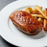 The final presentation is where technique meets artistry. Begin by arranging a generous portion of the glistening root vegetable medley artfully on one side of a pristine white ceramic plate. Ensure the vegetables are not piled high, but spread slightly to showcase their individual textures and caramelization. Next, slice the rested duck breast against the grain into elegant, uniform pieces. Fan these slices slightly over the vegetables, ensuring the beautifully rendered, crisp skin is prominently displayed. Just before serving, drizzle the glossy Glacer à Blanc glaze judiciously over both the duck and the vegetables. A final, meticulous wipe of the plate’s rim with a clean linen cloth ensures a professional, unblemished finish, signaling the care and precision that has gone into every aspect of this exquisite dish.