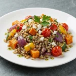 Once the vegetables are perfectly roasted and the quinoa is fluffed, it’s time for the grand assembly. In a spacious serving bowl, combine the warm, cooked quinoa with the tender, caramelized roasted vegetables. Pour the freshly made vinaigrette generously over this colorful medley. Gently toss, ensuring every grain of quinoa and every roasted morsel is lovingly coated in the bright, herbaceous dressing. The goal here is a beautiful distribution, a harmonious blend where each bite offers a delightful contrast of textures and tastes.