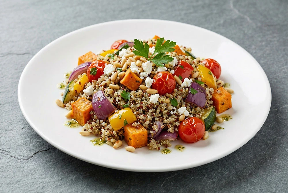 Vibrant Quinoa & Roasted Vegetable Salad with Lemon Herb Vinaigrette